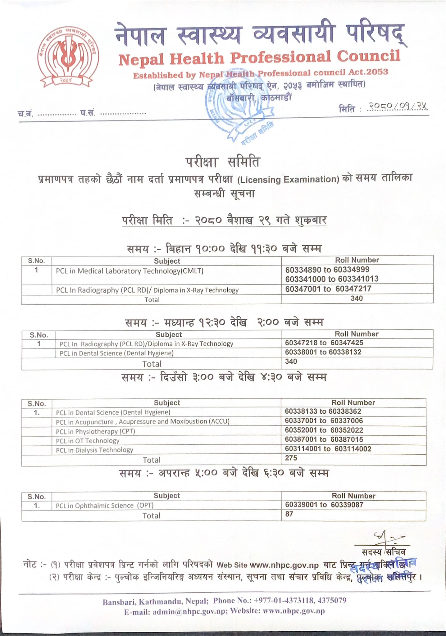 NHPC license examination 2080 notice detailed with how to print the admit card