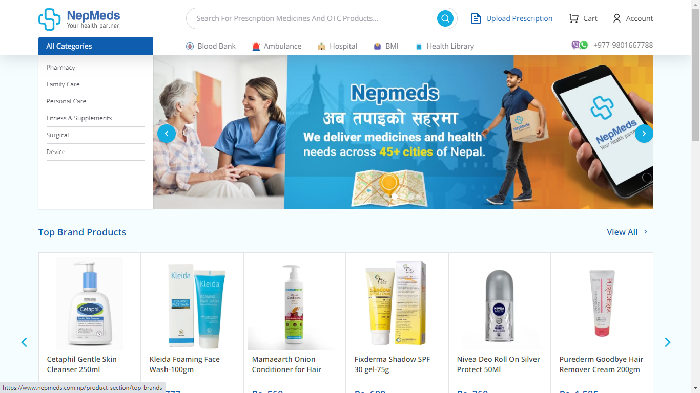 Nepmeds a online health service which provides online medicines, family care, personal care, supplements, fitness, surgical and devices online. They also have a online health education /health library section available for public awareness. They also have an android app available.